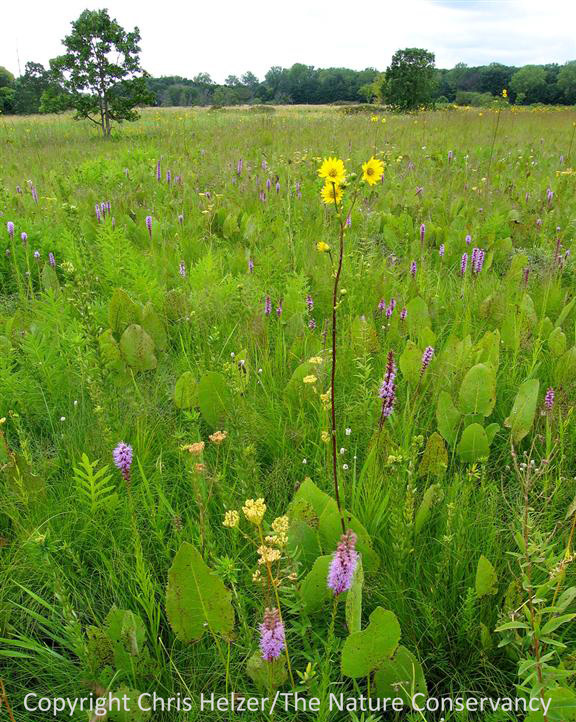 A high quality prairie (tallgrass prairie, in this case) can be judged largely by its plant species composition. A “good” prairie might have 20 or 30 plant species per square meter, for example, and more than 100 species per acre – including a mixture of both common and rare species. Besides the value for the direct conservation of species, that kind of plant diversity provides multiple ecological benefits. More plant species means more choices for animal species that rely on them as food and/or habitat resources, as well as a more consistent supply of those resources through the season – because some plants will always be emerging/blooming as others go dormant. Because of that, prairies with lots of plant species tend to have lots of insect and other small animal species as well. In addition, prairies gain resilience from plant species diversity, because if multiple species fill similar ecological roles the prairie community can better withstand the temporary decline of some species due to drought or pest outbreak. A prairie that is missing many of its species, or that is dominated by a few species with only scattered small populations of others, can’t be considered to be of high quality or to be “conserved.”