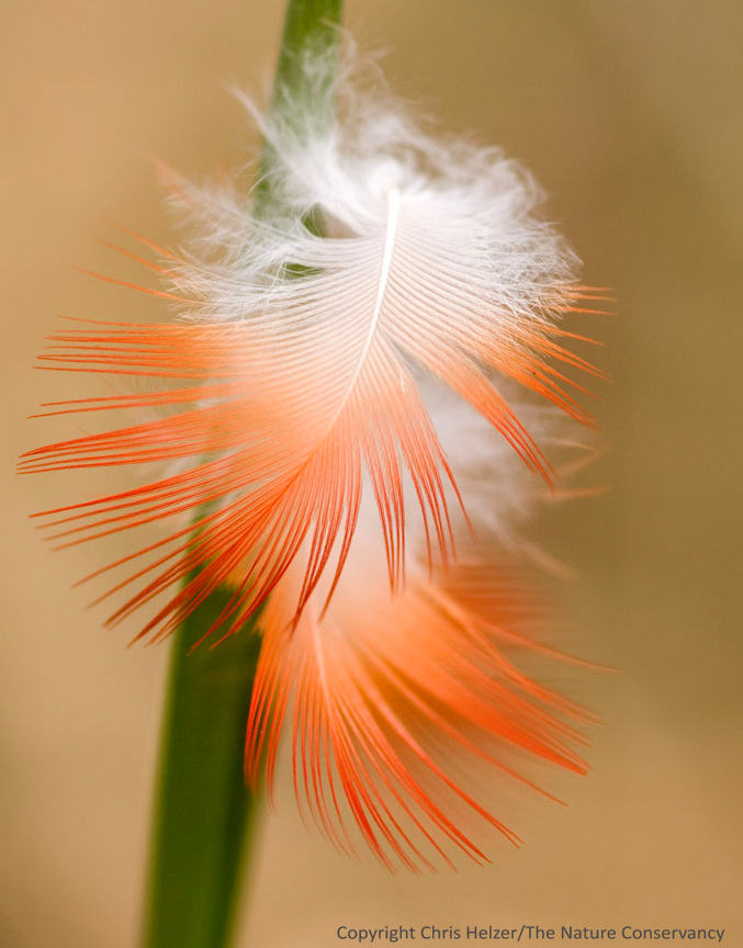 Ha! Pretty small feathers for that… And the big pile of black feathers next to it would suggest otherwise! Unless the flamingo killed and ate a blackbird… do they do that in Indiana??