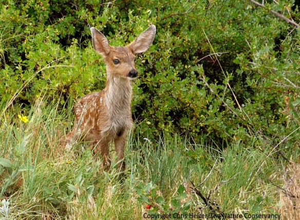 This mule deer fawn popped out of the grass as we rounded a trail corner near the Red Rocks Amphitheater south of Denver.