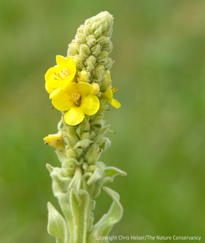Common mullein (Verbascum thapsis) is a non-native plant considered to be invasive in some places, but not in Nebraska. In our Platte River Prairies it appears when dominant grasses are weakened, but doesn't persist when those grasses recover.