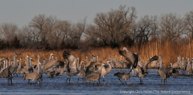 In the fall, cranes pass through the Platte Valley again on their way south, but they don’t usually appear in large numbers or stay very long. This past fall, however, we kept seeing groups of cranes hanging around, and they never seemed to leave. By December, it was clear that something unusual was happening. I speculated in an earlier post about what might be going on, but no one really knows for sure.
