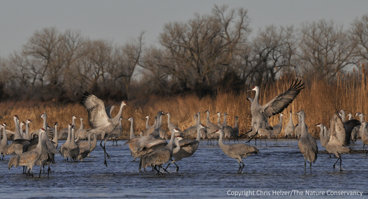 If you haven’t been following this story, Nebraska’s Central Platte River is normally the site of a massive staging event of sandhill cranes each spring, when about 600,000 cranes converge on the river. Those cranes roost overnight in the river and spend their days feeding and building body condition for the rest of their migration and the breeding season. Typically, cranes begin arriving on the Platte in mid-February and are mostly gone by early April.