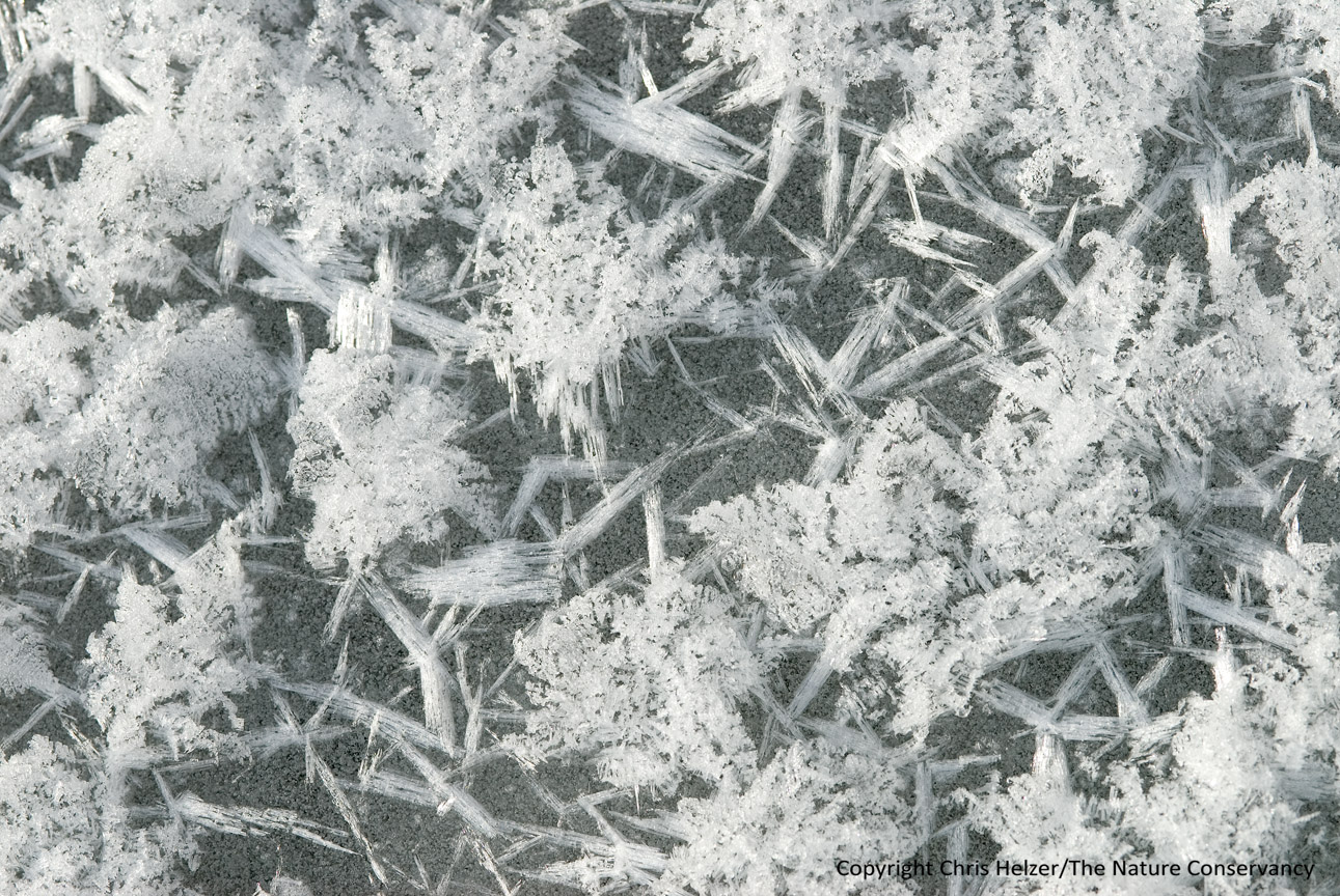 This photo of frost was taken on the frozen surface of a stream in Lancaster County, Nebraska. It makes me cold just looking at it.