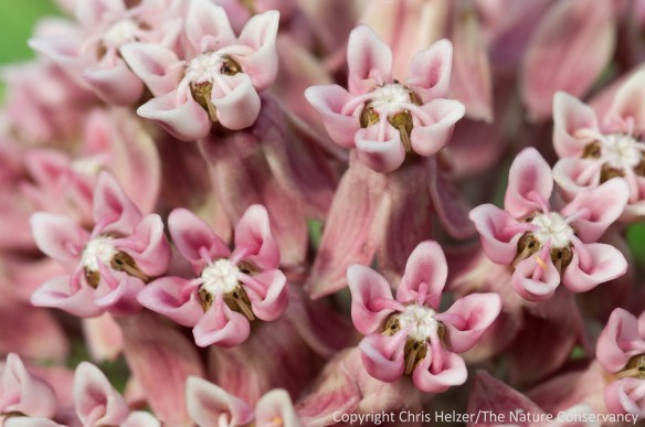 I became curious about milkweed pollination because we have a very rare milkweed locally. The small population has only produced a pod once in 20+ years. Something removed the pod so seed never was formed. The CBG is currently doing a project on it. However, I have not been able to obtain any information on their research results. My thought was that they should just keep trying to cross pollinate it. However, I have been told the reproductive issue is more complicated. That is all I know. I wish I could get more information about the work that is occurring with this rare species.