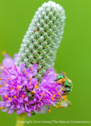 We saw a lot of bees on prairie clovers last week. This green sweat bee was not photographed during the week – and interestingly, we saw relatively few green sweat bees in our prairies last week.