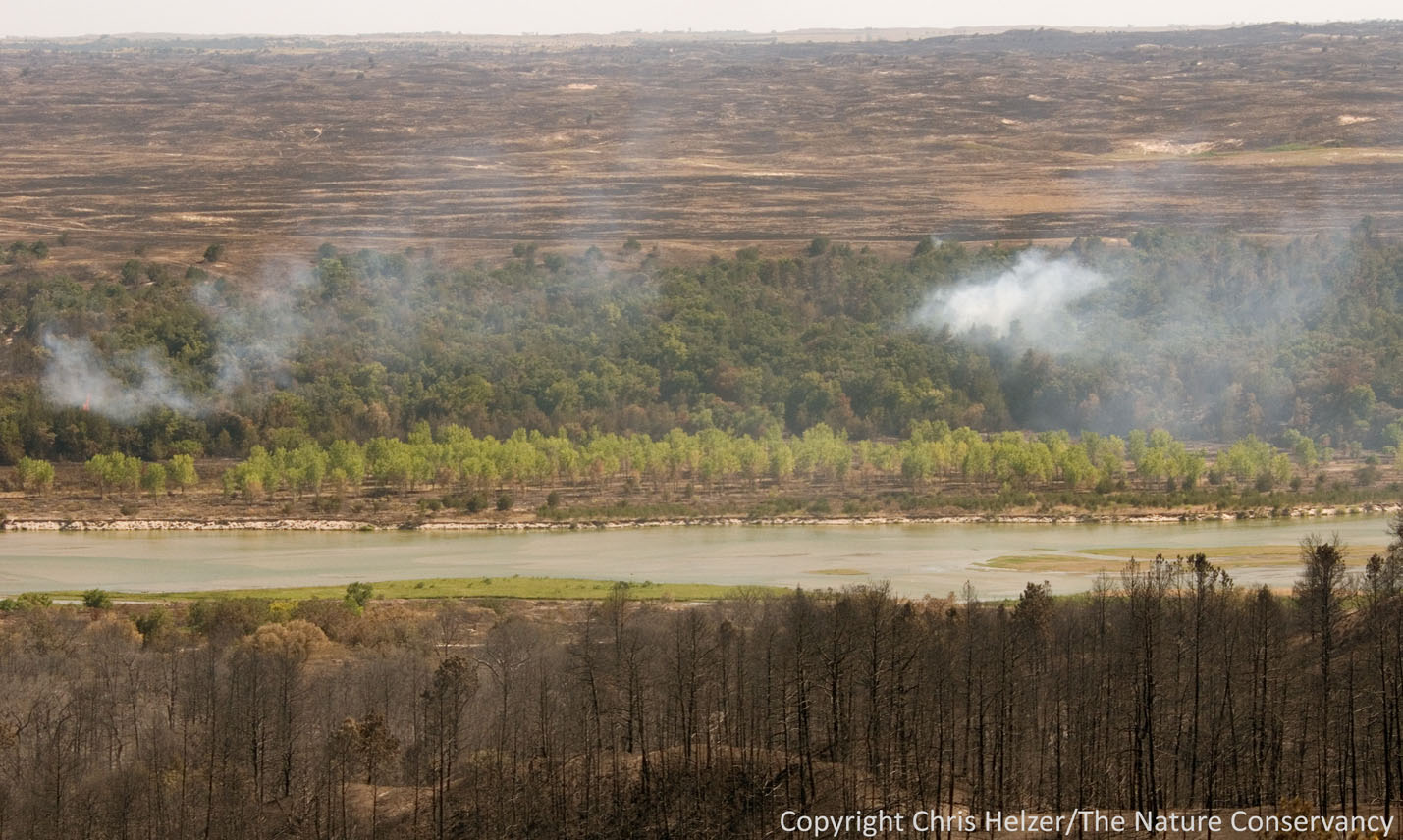 Some of you are aware that there are several wildfires burning along the Niobrara River in north-central Nebraska. As of this morning, the combination of fires had burned an estimated 58,000 acres, and several areas are still actively burning. The Nature Conservancy’s Niobrara Valley Preserve is included within the area affected by these fires and much of the land within the Preserve has already burned.