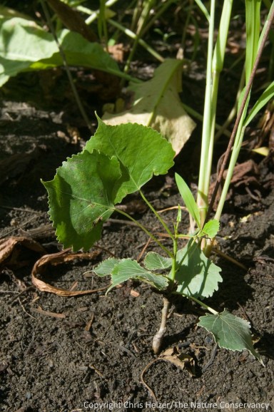A rooted seedling in an non-irrigated portion of a site. Most of these seedlings appeared to be surviving at this point.