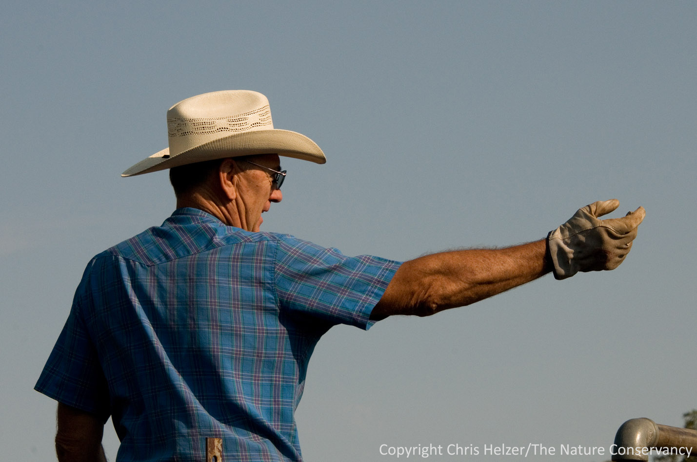 C Published August 14, 2012 at 1429 × 949 in Bison Roundup 2012 Bison manager, Richard Egelhoff, directing traffic. Niobrara Valley Preserve