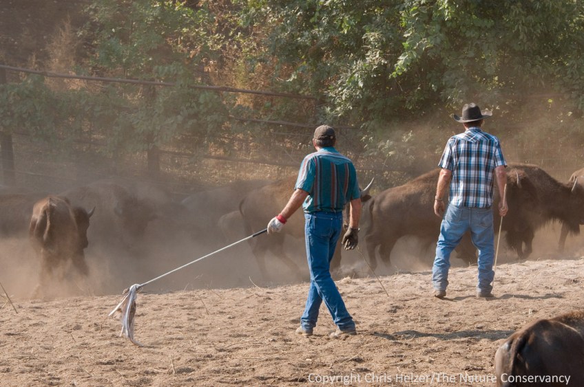 E Published August 14, 2012 at 1429 × 949 in Bison Roundup 2012 Preparing to push a group of bison into the chute. Niobrara Valley Preserve