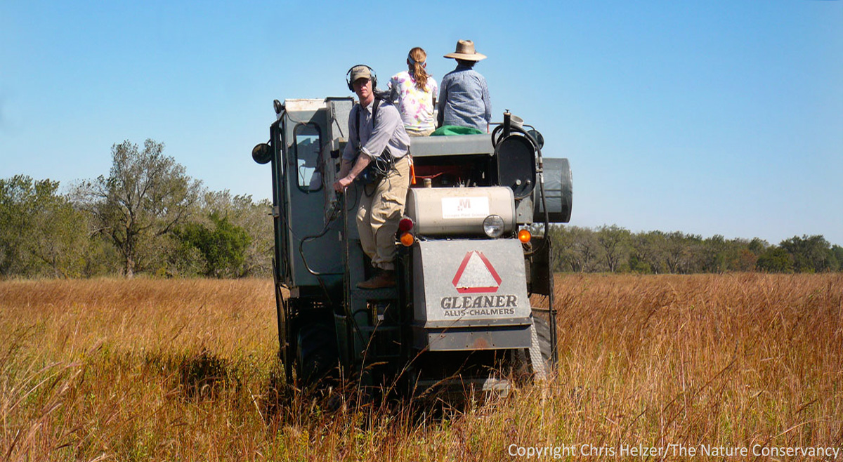We had the opportunity to host Mike and the NET crew at our Platte River Prairies back in the fall of 2010.  They filmed us harvesting seed and talking about the importance of prairies and restoration.  In addition, Bill Whitney and his crew from the Prairie Plains Resource Institute had their combine on our prairies at the time, harvesting seed for both of us, so the film crew got to go along for the ride.