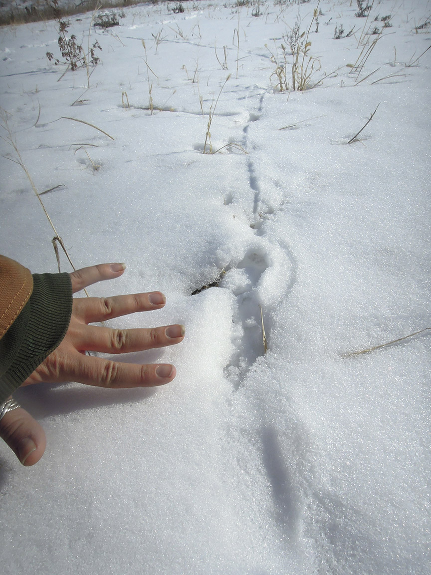 4. According to my copy of Stokes Guide ot Animal Tracking by Donald and Lillian Stokes, tunnels in snow can be Rabbit, Weasel, Red Squirrel, Vole, Mouse and Shrew. Rabbits would be wider, about 6 inches. Weasels are generally shorter tunnels, to access the smaller animals under the snow. Red Squirrels like conifers so would not be out in the prairie. Mice mostly run over the snow, only occasionally tunnelling into it. That leaves Voles and Shrews. Voles are a little bigger, but all the tunnels widen as they start to melt. Voles sometimes dig up to the surface of the snow. In prairie, I’d pick Vole over Shrew.
