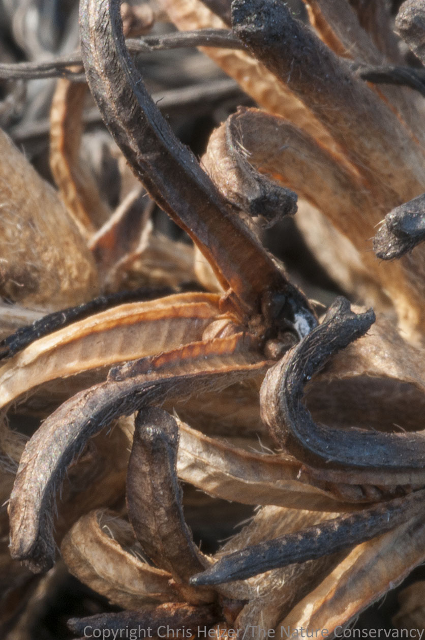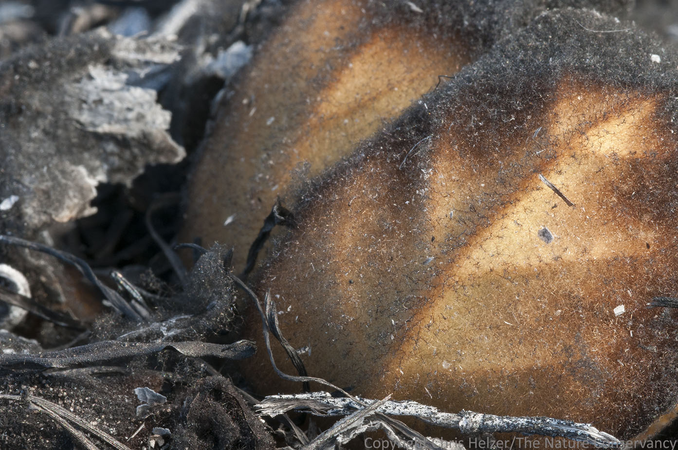 Prickly pear cactus after a prairie fire. Fire doesn’t seem to kill the plants, but does set them back for a while. The Nature Conservancy’s Platte River Prairies, Nebraska.