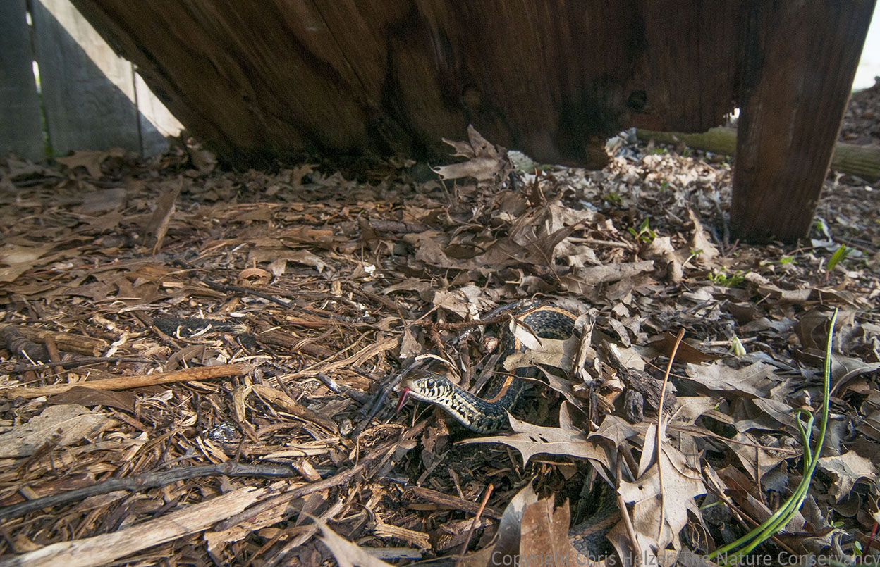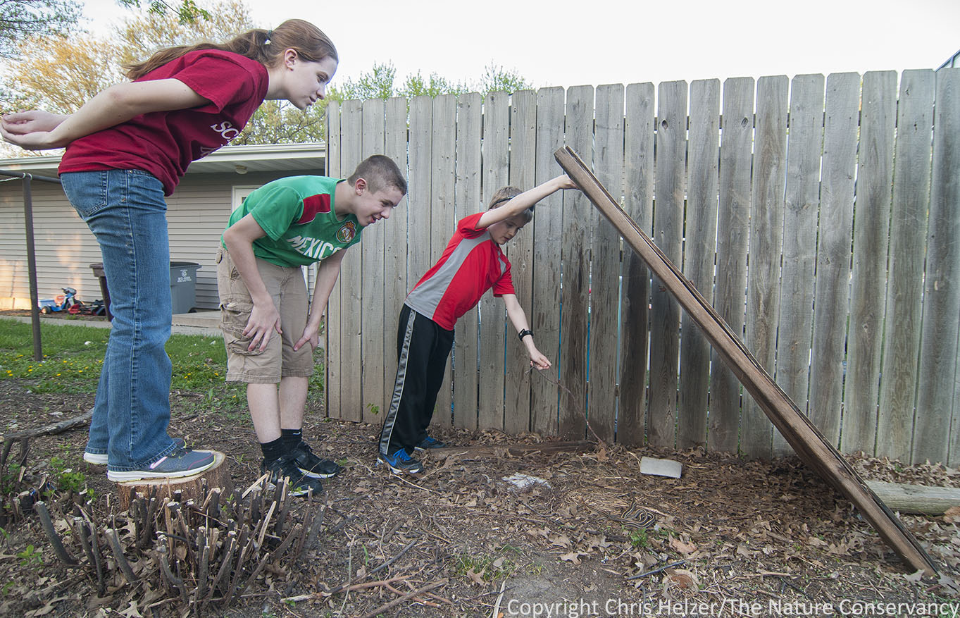 Last year, I moved into a nice old house (100 years old this year) with a big lot and plenty of potential. The kids have been enjoying the yard, the loft above the garage, and some of the new furniture and accessories (including a bison skull named Lefty hanging on the living room wall). One of the unexpected perks of the new house is some junk wood along our neighbor’s fence. I found the wood late last fall as I was trimming shrubs. It was buried beneath what appeared to be several year’s worth of leaves. My first thought upon seeing it was that it might be a good place to find snakes, but it was late enough in the year that they weren’t around then. I left the wood in place, figuring we’d check it out again in the spring.