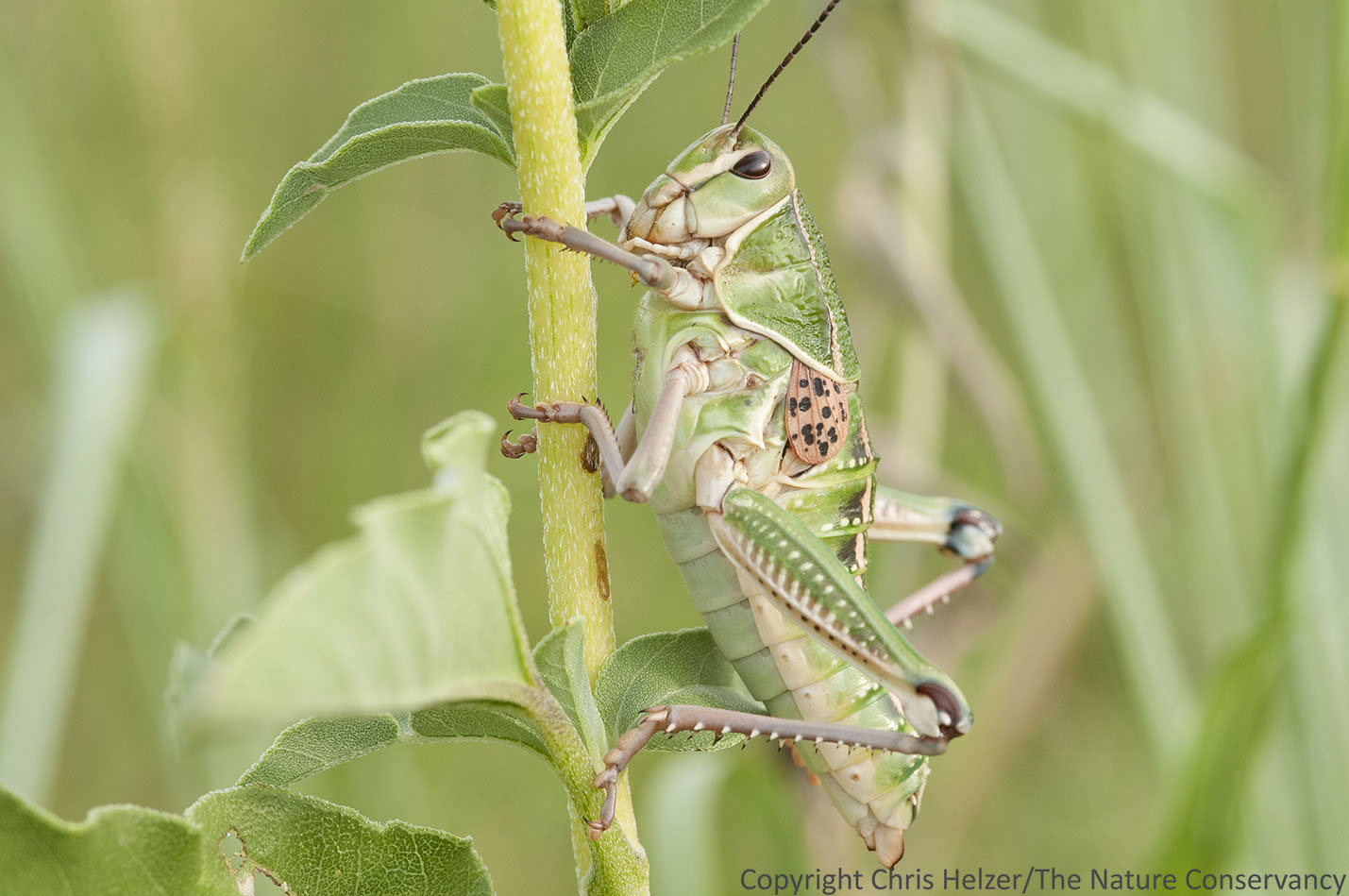 Grasshoppers, and katydids, which look like grasshoppers but have much longer antennae, are a fascinating group of insects. They have interesting and complex communication strategies and each species has its own set of dietary preferences – some are specialists on just a few plant species and others are generalists. Only a very few are considered to be pest species, and most of those are simply native species that have adapted well to the abundant food humans provide in the form of monoculture row crops.