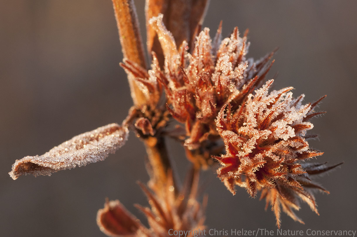 ENPO151107_D003 Published November 12, 2015 at 1219 × 810 in Photo of the Week – November 12, 2015 Roundheaded bushclover (Lespedeza capitata) with frost. Lincoln Creek Prairie, Aurora, Nebraska.