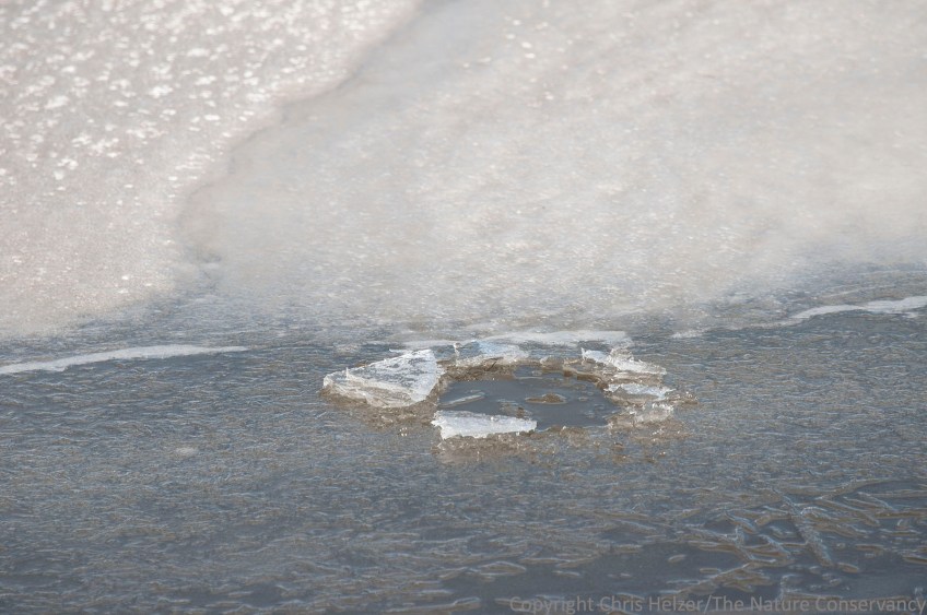 ENPO151222_D013 Published December 25, 2015 at 1608 × 1068 in My Long Irrational Nightmare is Over. Sort of. Nevermind. Ice hole where an otter was a few seconds earlier… The Nature Conservancy’s Niobrara Valley Preserve, Nebraska.