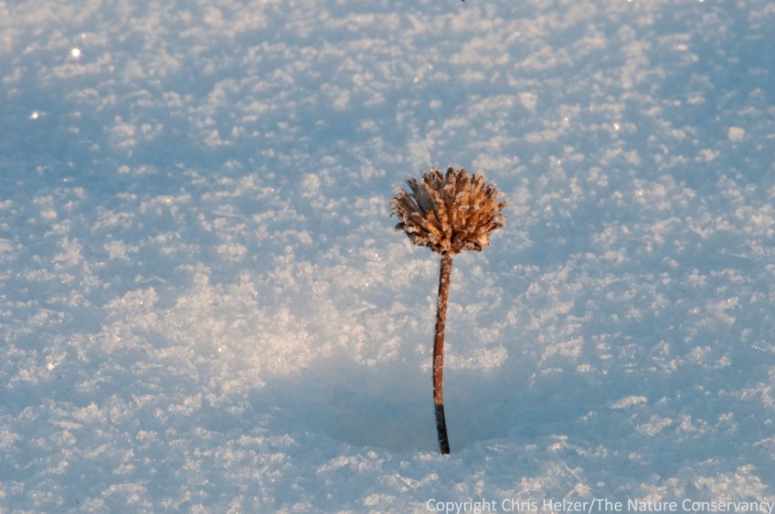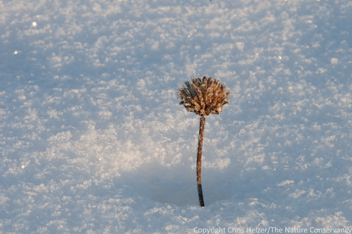 ENPO130223_D005 Published January 15, 2016 at 1429 × 949 in Photo of the Week – January 15, 2016 Stiff sunflower seedhead in snow. Leadership Center Prairie. Aurora, Nebraska