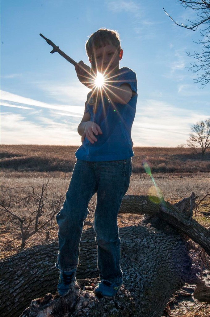 ENPO160131_D013 Published February 1, 2016 at 973 × 1465 in Boys and Sticks Boy with sticks. Helzer family prairie, Nebraska. Calvin Miller (Photographer’s stepson)