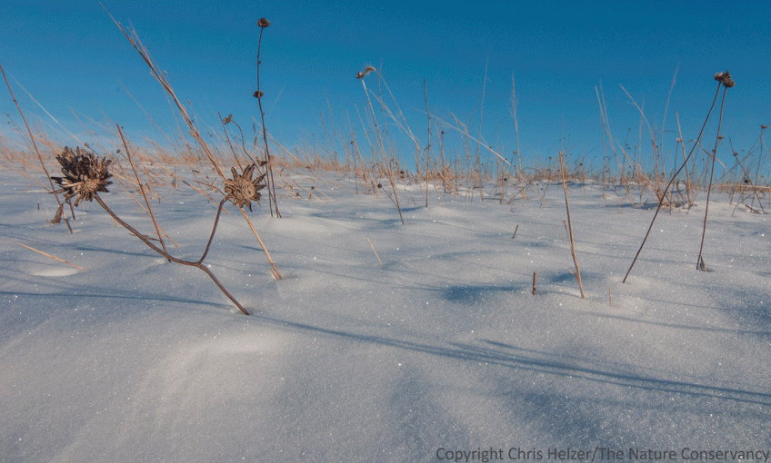 ENPO160206_D009 Published February 8, 2016 at 1343 × 808 in Prairie Blizzard Survival Knee-deep snow and even deeper drifts buried these sunflowers and many other tall prairie plants. The Nature Conservancy’s Platte River Prairies, Nebraska.