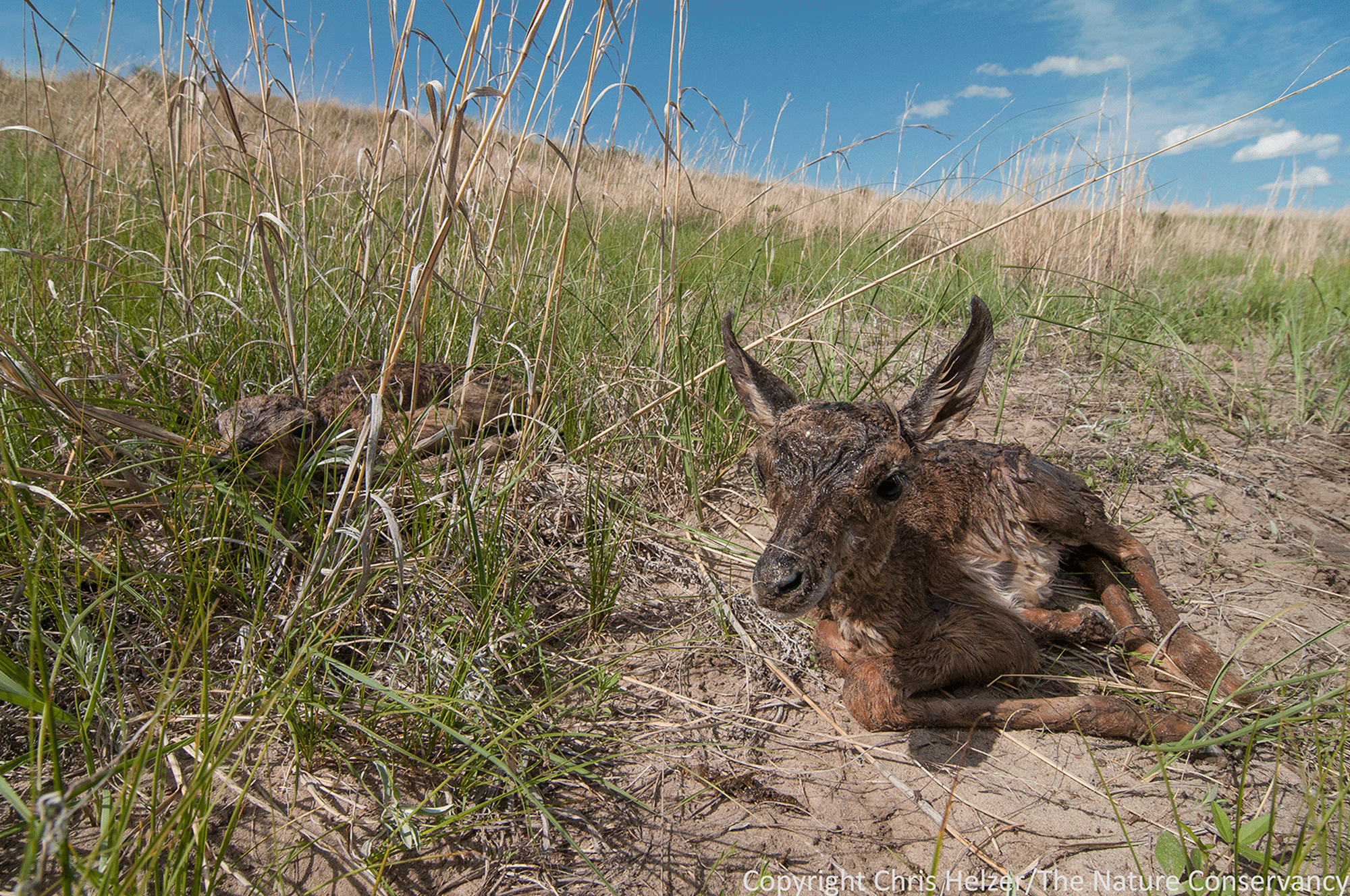 _DSC6469 Published May 25, 2016 at 2000 × 1328 in Family Time on the Niobrara Pronghorn fawns (the second is to the left and behind the one in the foreground). The newest one was so recently-born it was still wet.