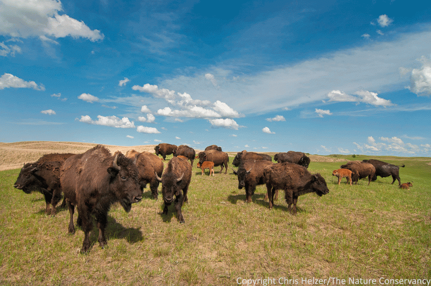 I revisited the same group of bison we’d seen earlier in the week, and the second time I found them, the cows, calves, and yearling bulls had been joined by three mature bulls. I’m not sure why the bulls weren’t with them the first time, or why they joined them the next day.