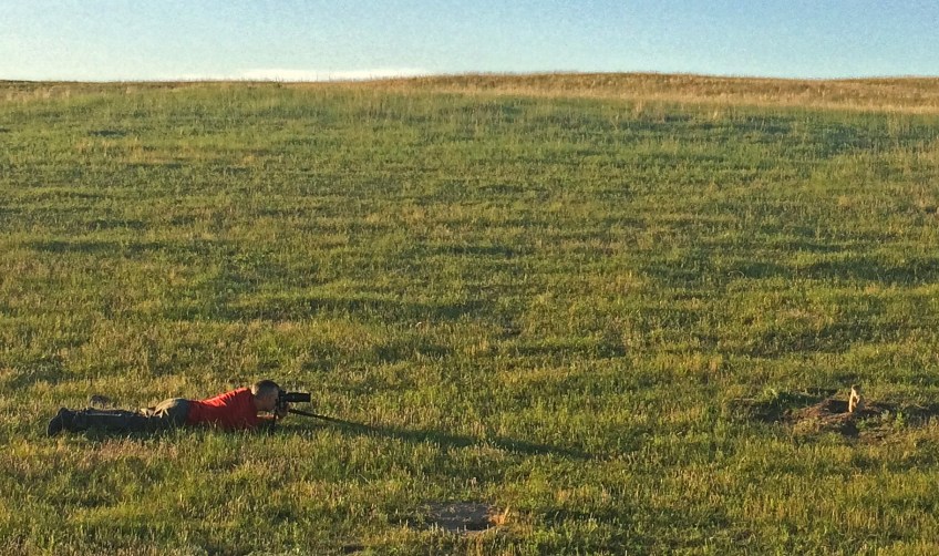Anna Helzer photo of Chris Helzer photographing prairie dog at NVP Published July 10, 2016 at 2968 × 1760 in A Conciliatory Gift from the Mammal Community? Anna took this photo of me with her phone. It shows how crazy close the prairie dog let me get. Sure, I was being slow and following the rules of good wildlife stalking, but still…