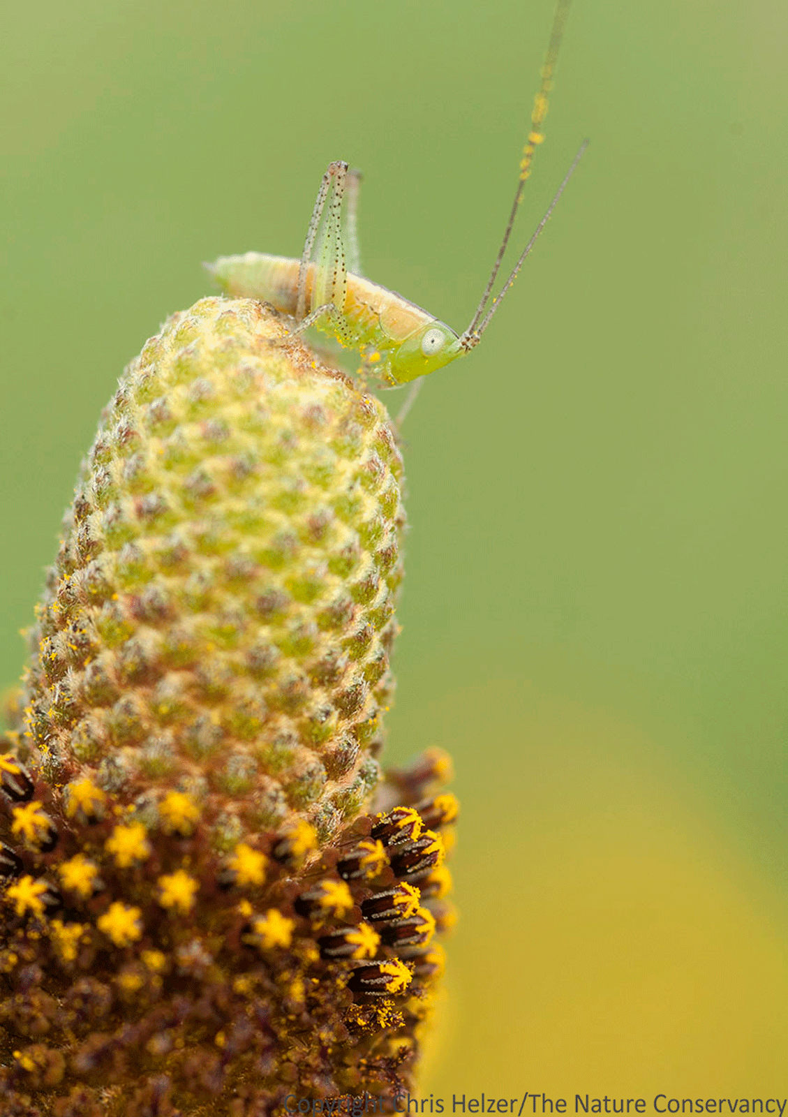 ENPO160713_D013 Published July 21, 2016 at 1129 × 1600 in Photo of the Week – July 21, 2016 Katydid nymph on upright prairie coneflower. Platte River Prairies.