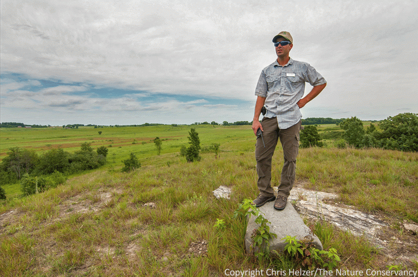 ENPO160719_D038 Published July 24, 2016 at 1600 × 1062 in Returning to Nachusa Grasslands Nachusa’s Cody Considine surveys the prairie where bison are augmenting an already complex prairie community.