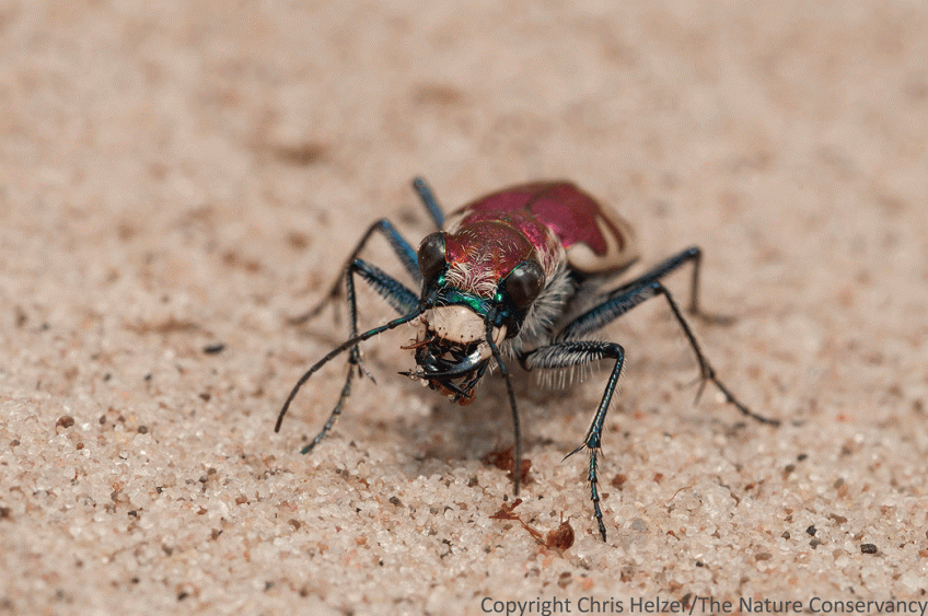 ENPO160824_D043 Published August 29, 2016 at 1500 × 996 in That Predator Just Killed My Predator! The big sand tiger beetle (Cicindela formosa) has been eluding me this summer, but I finally get a good set of photos of one eating a recently captured ant.