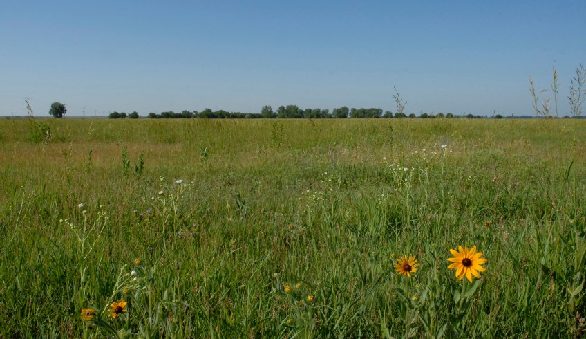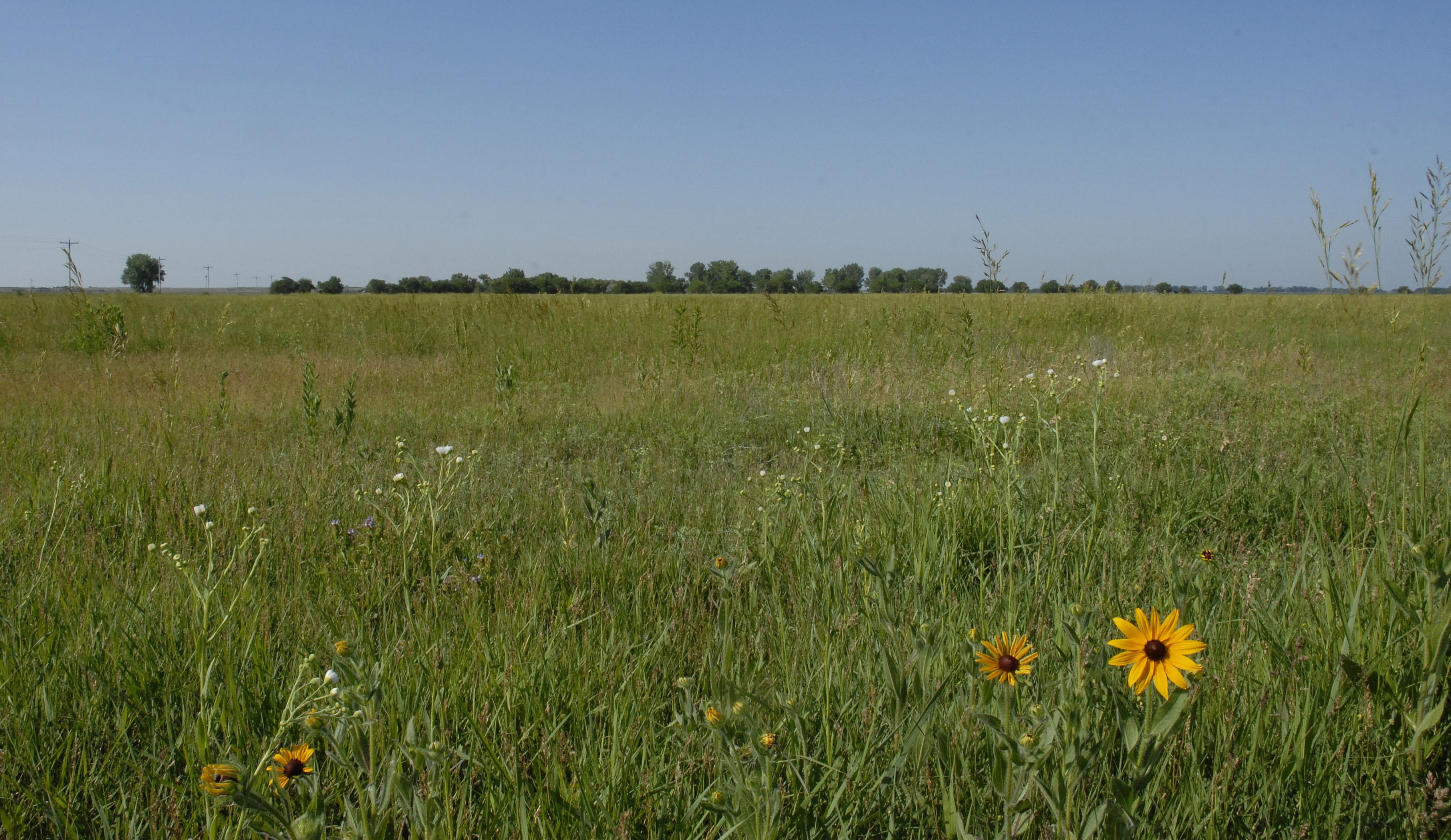 The small row of trees on the horizon may seem insignificant, but the removal of those trees would visually reconnect three chunks of prairie; potentially having pronounced effects on grassland bird nesting occurrences and brood rearing success. Photo by Eric Chien.