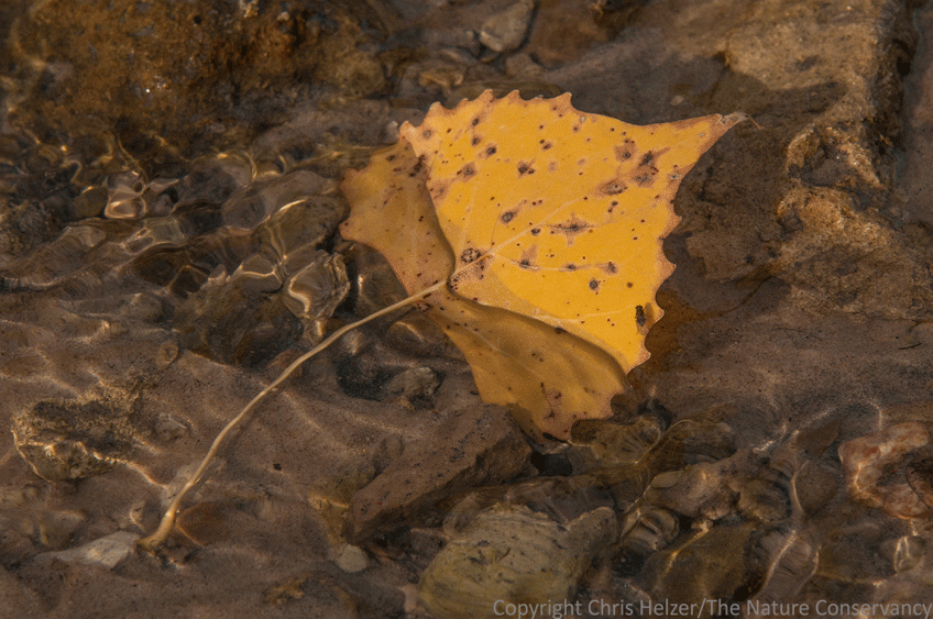enpo161027_d066 Published October 27, 2016 at 1400 × 930 in Photo of the Week – October 27, 2016 Cottonwood leaf in a stream. The Nature Conservancy’s Niobrara Valley Preserve, Nebraska.