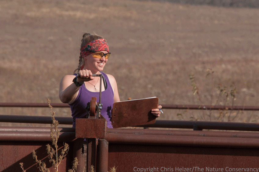 enpo161027_d019 Published October 31, 2016 at 1416 × 941 in A Family Roundup Katharine did two jobs much of the day, running a gate and also recording the sex and age of the animals as they came through.