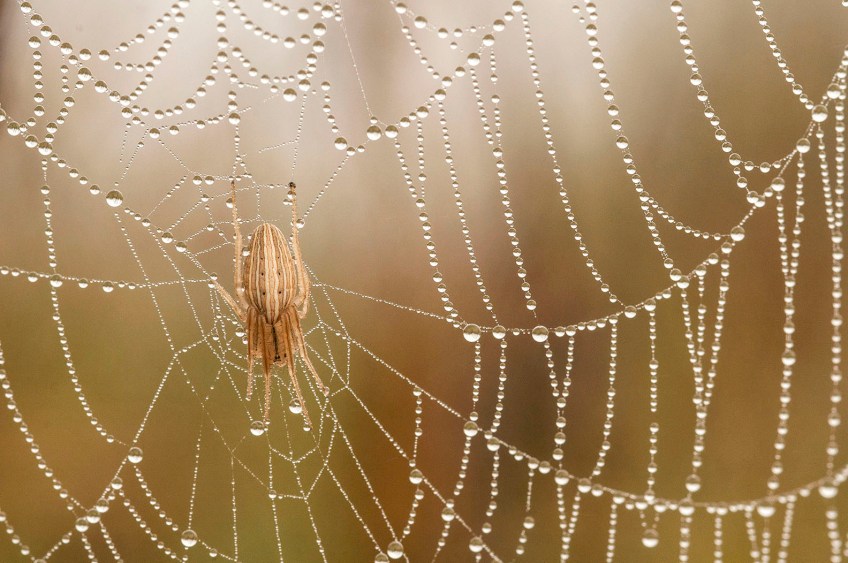 Spider and web in foggy prairie. TNC Niobrara Valley Preserve, Nebraska. Published December 17, 2016 at 1584 × 1052 in Best of 2016 – Stories and Photos From This Year Spider and web in foggy prairie