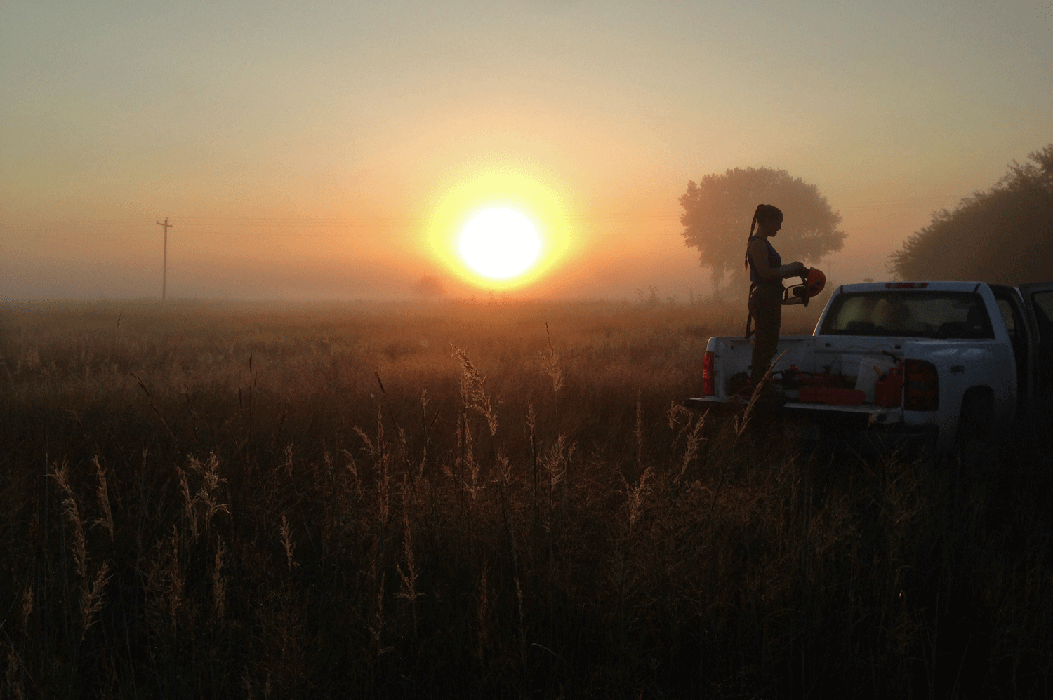 img_1555 Published January 24, 2017 at 1500 × 998 in Hubbard Fellowship Post – Eric’s Great Plains Tourism Proposal Katharine (Hubbard Fellow) preparing for some chainsaw work on a late summer morning.