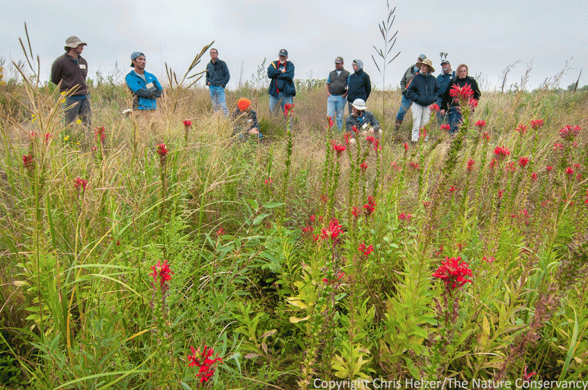enpo160915_d008 Published February 28, 2017 at 1512 × 1004 in Save the Date – Grassland Restoration Network July 11-12, 2017 A discussion in front of cardinal flower and a restored wetland during the 2016 Grassland Restoration Network at The Nature Conservancy’s Platte River Prairies.