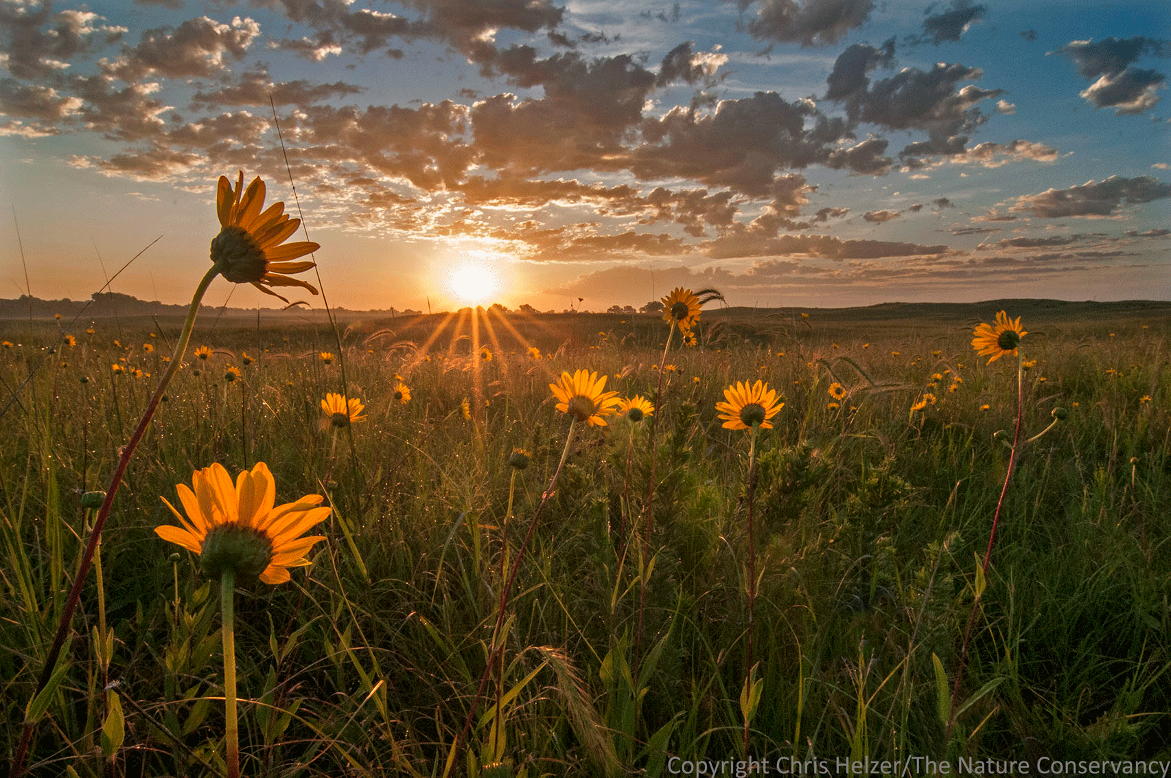 enpo150802_d004_2 Published March 2, 2017 at 1706 × 1133 in Photo of the Week – March 2, 2017 Sunflowers and sunrise in the Platte River Prairies.