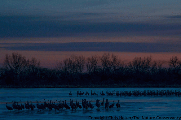 I hope I’ve made it clear through the years that I am really grateful to have my job. During each March, one of the major perks is access to viewing blinds that allow a front row seat to watch migratory sandhill cranes on their overnight roost. This morning, I took my wife, two of our kids, and my in-laws out to the Platte River to watch the cranes wake up.
