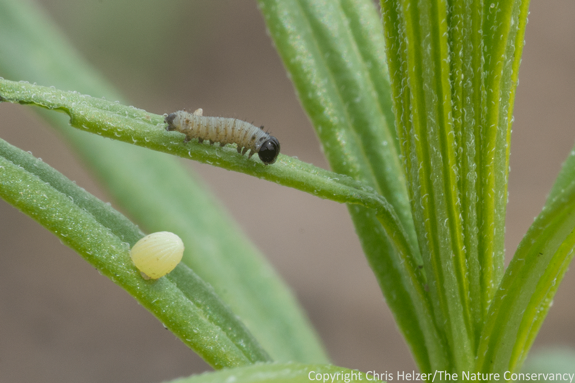 This plant had both an egg and an already-hatched caterpillar. Hopefully, as it grows, it will find not only sufficient milkweed, but also abundant nectar resources for its adult life.