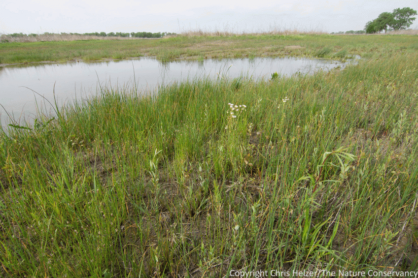 ENPO170515_D014 Published May 17, 2017 at 1800 × 1200 in The Joy, Angst, Excitement and Dread of Walking Through a Young Restored Prairie The wetland swales are filling in quickly with wetland plants, including lots of spikerushes, grasses, rushes, and a few forbs and sedges. Much of that vegetation came from our seed, but I think some also came from the seedbank.