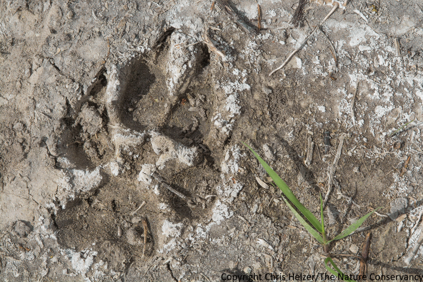 ENPO170515_D052 Published May 17, 2017 at 1600 × 1067 in The Joy, Angst, Excitement and Dread of Walking Through a Young Restored Prairie I was really glad to see this coyote track along the edge of the site. The presence of these (relatively) large predators will be key to the long-term success of the ecological community in this restored prairie.