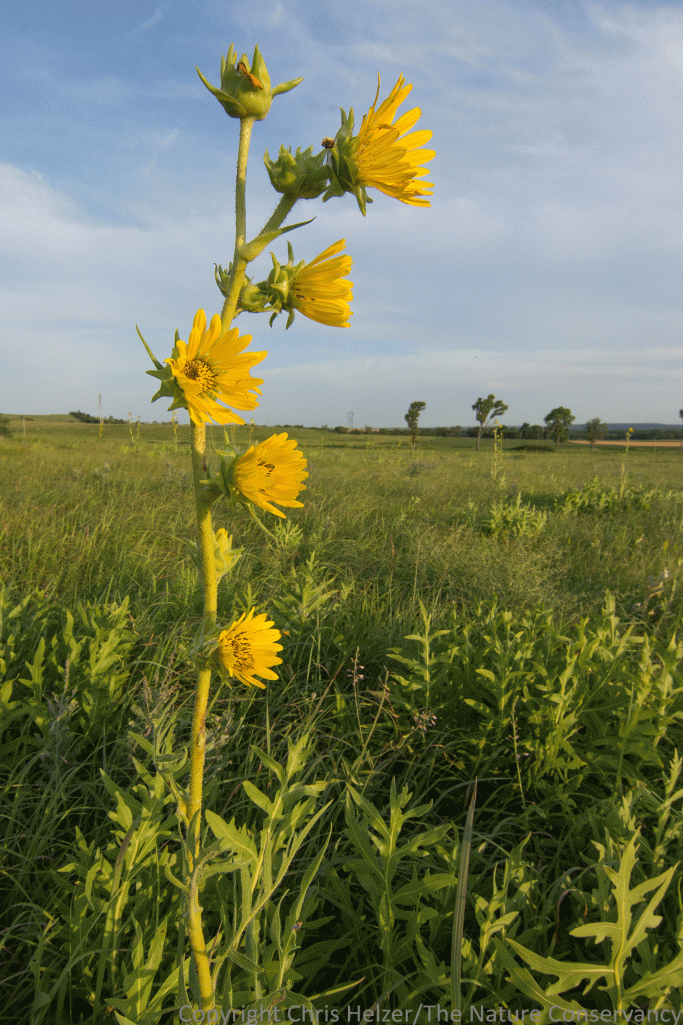 ENPO170712_D021 Published July 14, 2017 at 1521 × 2282 in Photo of the Week – July 14, 2017 A blooming compass plant is surrounded by the huge beautiful leaves of non-blooming companions.