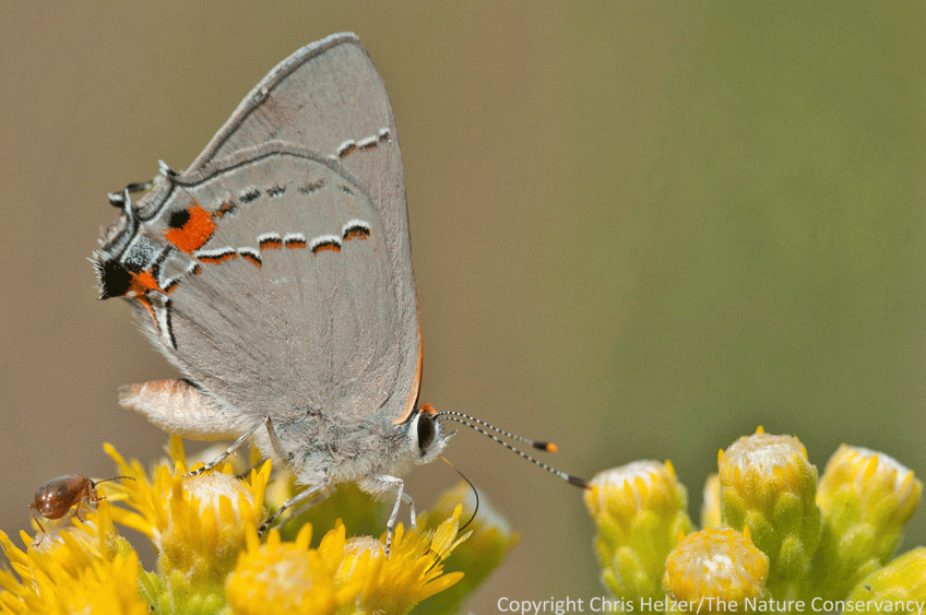 ENPO160828_D016 Published July 24, 2017 at 1429 × 949 in Pollinators and Insect Conservation Field Day – August 5 The gray hairstreak butterfly is just one of many insects we should see on August 5. Come learn about both the invertebrates and the conservation work that keeps them around.