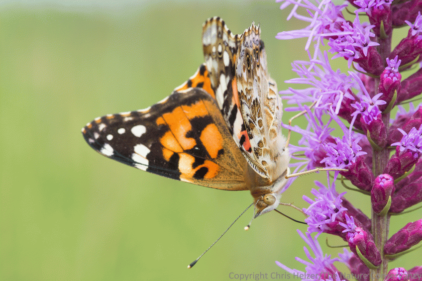 ENPO170802_D001 Published August 3, 2017 at 2000 × 1333 in Photo of the Week – August 3, 2017 A painted lady nectars from lanceleaf blazing star in the Platte River Prairies this week.