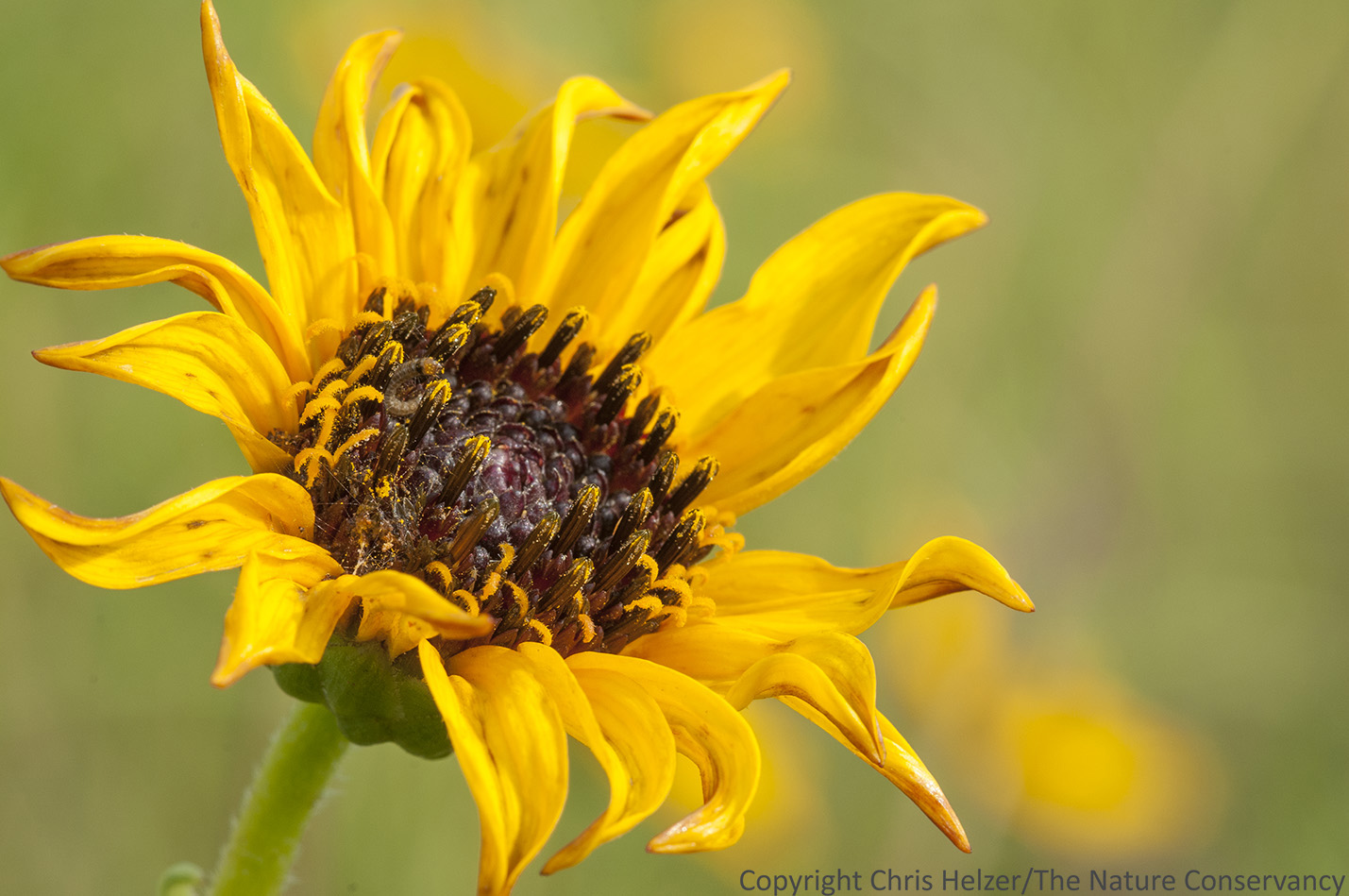 I have countless photos of stiff sunfllower (Helianthus pauciflorus), but this is my current favorite. I like the color and composition, but also the fact that the petals are only partially elongated, giving it a different look than more mature flowers.