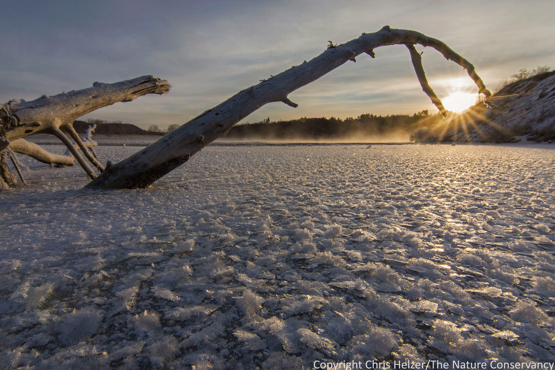 ENPO171227_D006 Published December 28, 2017 at 1935 × 1290 in Photo of the Week – December 28, 2017 A skeletal stick frames the rising sun over the Niobrara River.