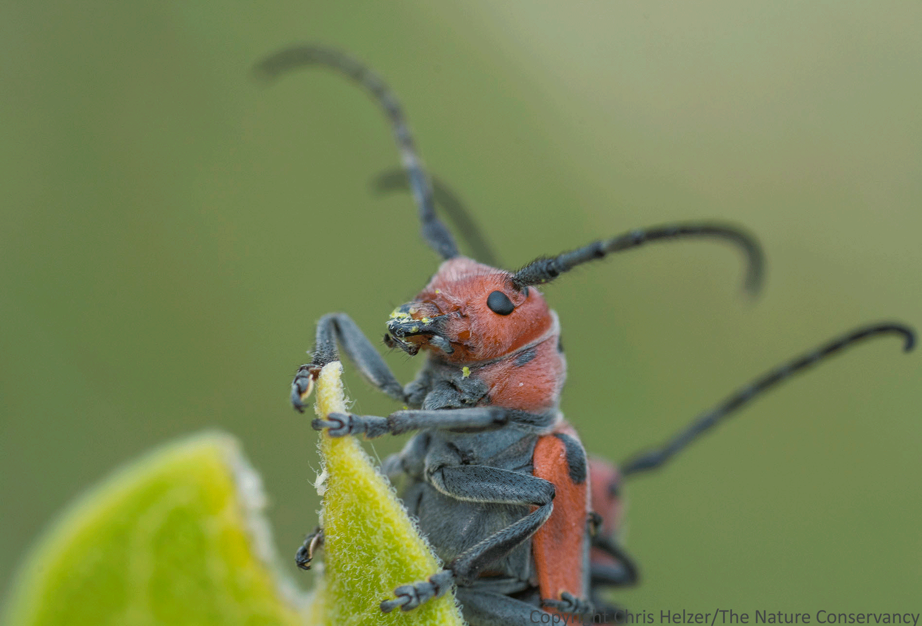 ENPO170624_D019 Published March 16, 2018 at 1896 × 1288 in Photo of the Week – March 16, 2018 These red beetles are often found feeding on milkweed plants.
