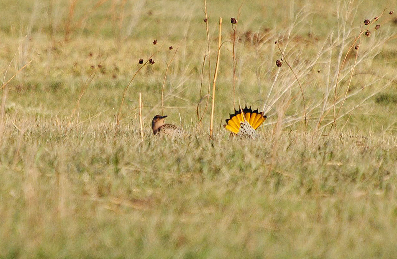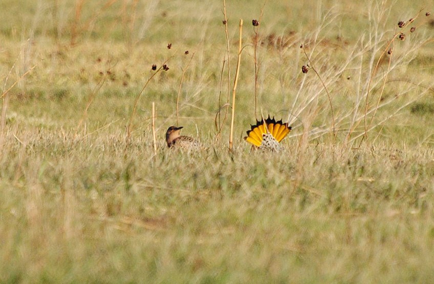 Though I’m not entirely sure what is happening in this photo, I believe the male flicker here was displaying its tail to the female in some sort of courtship behavior. Whatever it was doing, it made for a nice demonstration of the brightly colored feathers tucked away by this otherwise unassuming bird. Photo by Olivia Schouten