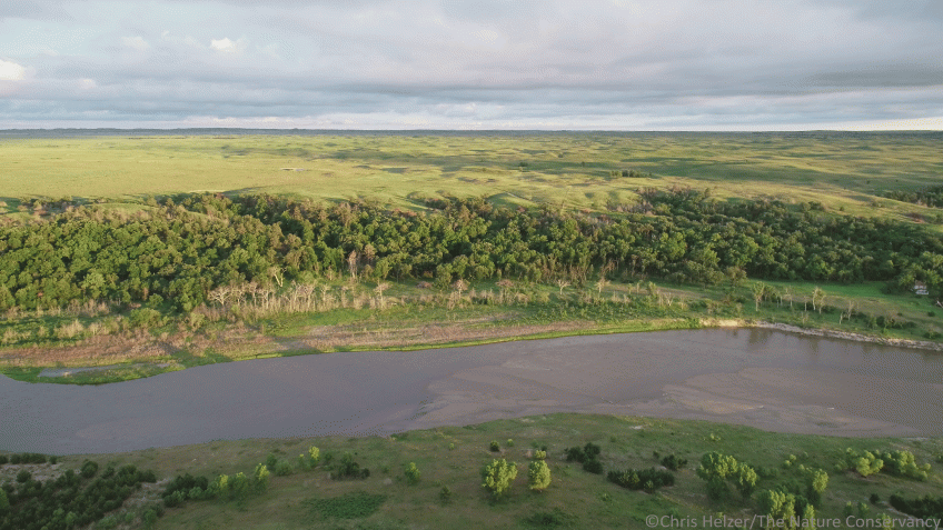 DJI_0032 Published June 26, 2018 at 3840 × 2160 in Niobrara Valley Preserve From The Air The Nebraska Sandhills extend nearly forever south of the river (12 million acres of contiguous prairie). You can’t even see the entire 12,000 east bison pasture in this photo. The scale is just immense.