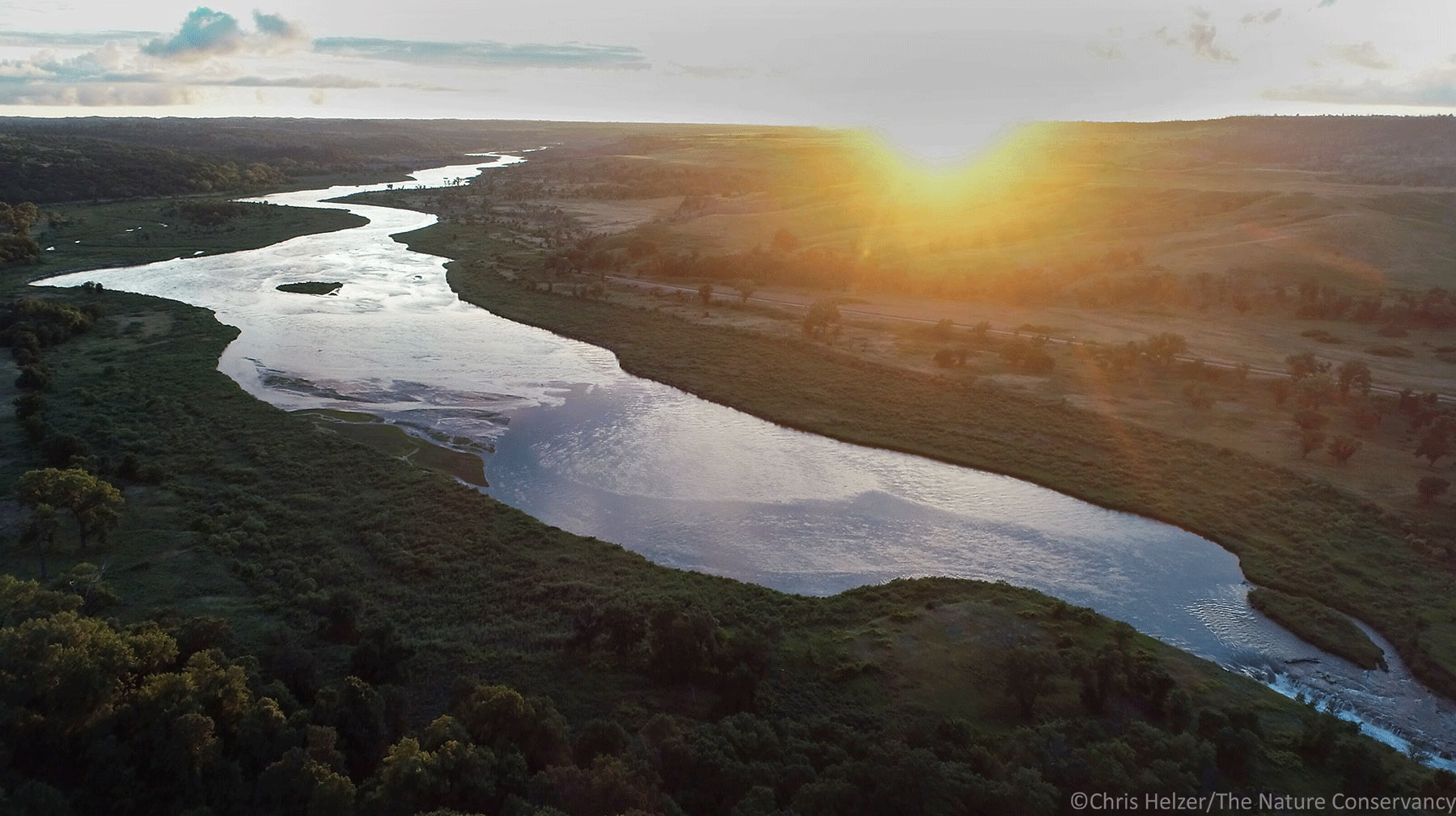 DJI_0065 Published June 26, 2018 at 1800 × 1009 in Niobrara Valley Preserve From The Air Facing the sun as it drops below the horizon.