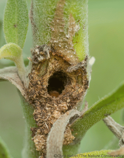 A few weeks after the previous photo, I found another cavity in another Maximilian sunflower stem. Same kind of insect? I have no idea.